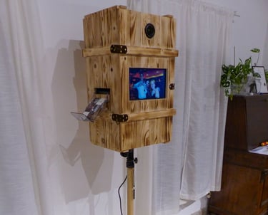 Unsere Fotoboxen im rustikalen Stil aus dunklem Holz sind perfekt für jede Veranstaltung. Sie verleihen deiner Feier eine besondere Note und sorgen für tolle Erinnerungen mit Freunden und Familie.